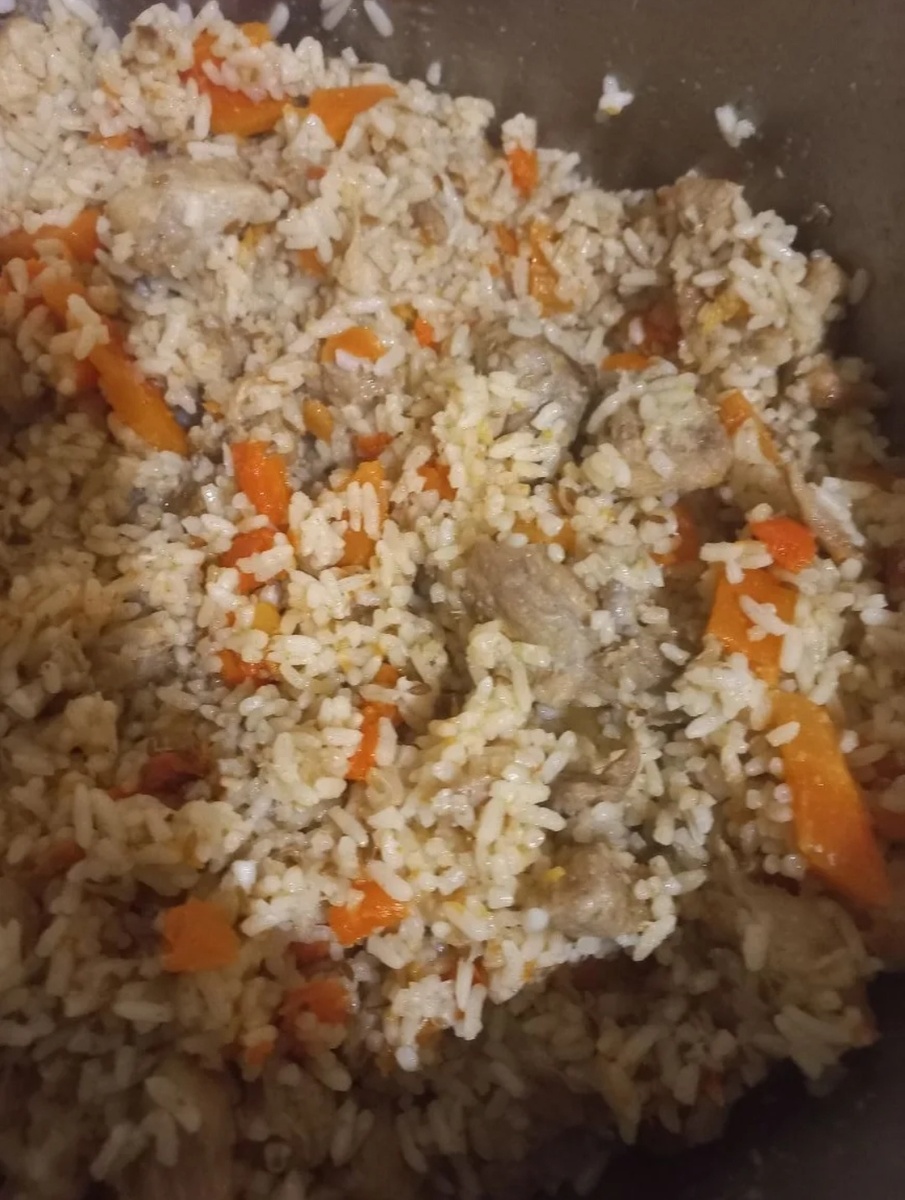 Это одно из самых экономных блюд, плов называется. Тут совсем немного ингредиентов, мясо, рис, лук, морковь, чеснок и зина.