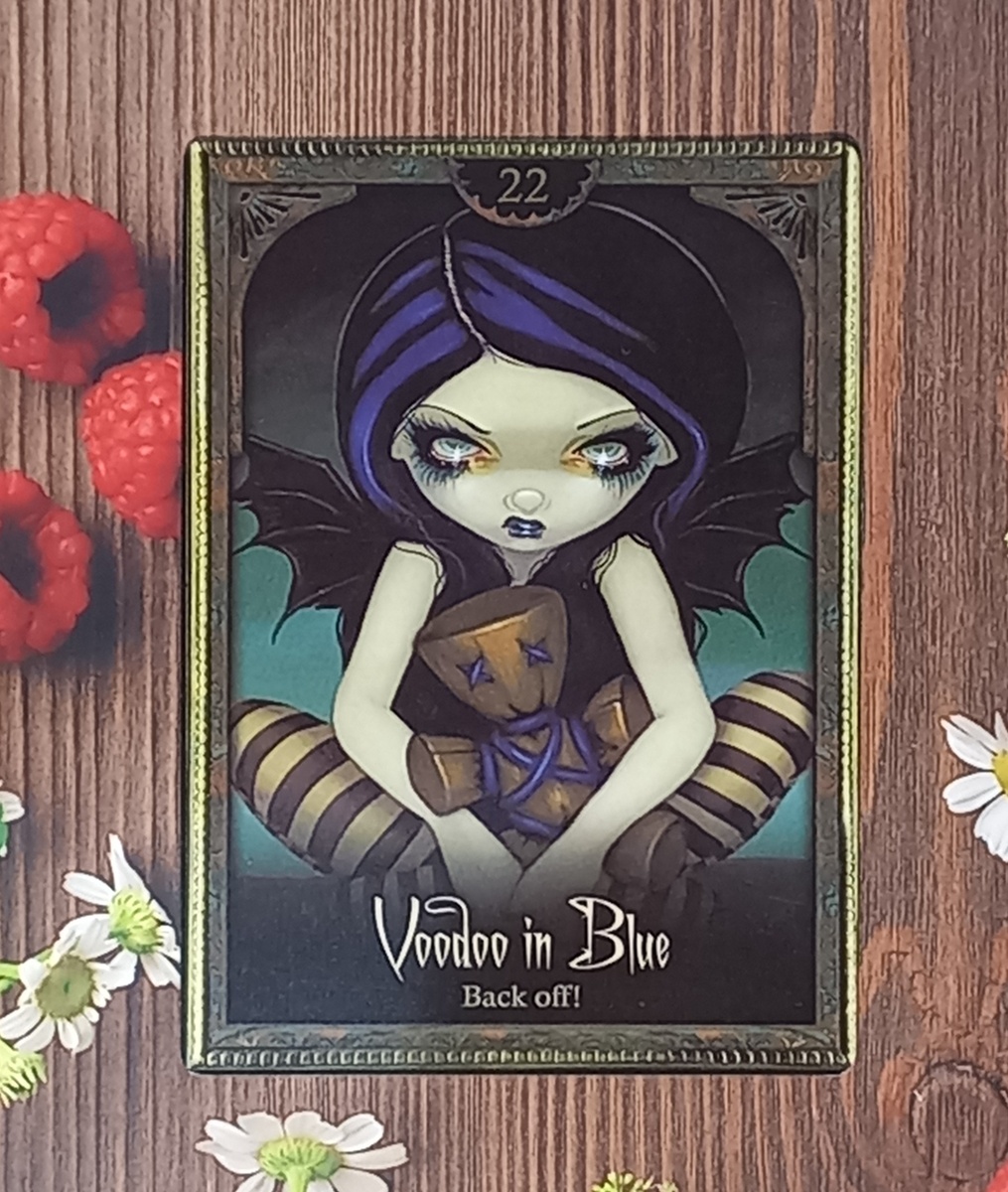 О Вуду в голубом : Эта фея даёт тебе понять, что время отодвинуть человека или ситуацию, которая не в твоих интересах... И что, возможно, тебе следует быть смелой и перестать быть такой уж открытой/дружелюбной к тому, что тебе, на самом деле, не нужно! Так, голубая фея машет своей куклой-вуду, давая понять совершенно чётко, что ты должна сказать кому-то : "Сделай шаг назад, отойди!". И ты знаешь, что ты не принимаешь во внимание свою интуицию во имя чего-то, что кажется рациональным/разумным, и с неправильным желанием помочь и поддержать кого-то, кто может не быть действительно хорош для тебя. Вуду в голубом не против выглядеть несколько неприятной/гадкой, когда она доносит свое послание : лучше быть громкой и чёткой, зато человек, который задевает, отвалит/отступит быстро. Поэтому она хочет, чтобы ты начала доверять своей интуиции (инстинктам). Чтобы ты начала ценить то, как быть честной, и задумалась над тем, как быть "милой". Ты действительно чувствуешь, чт