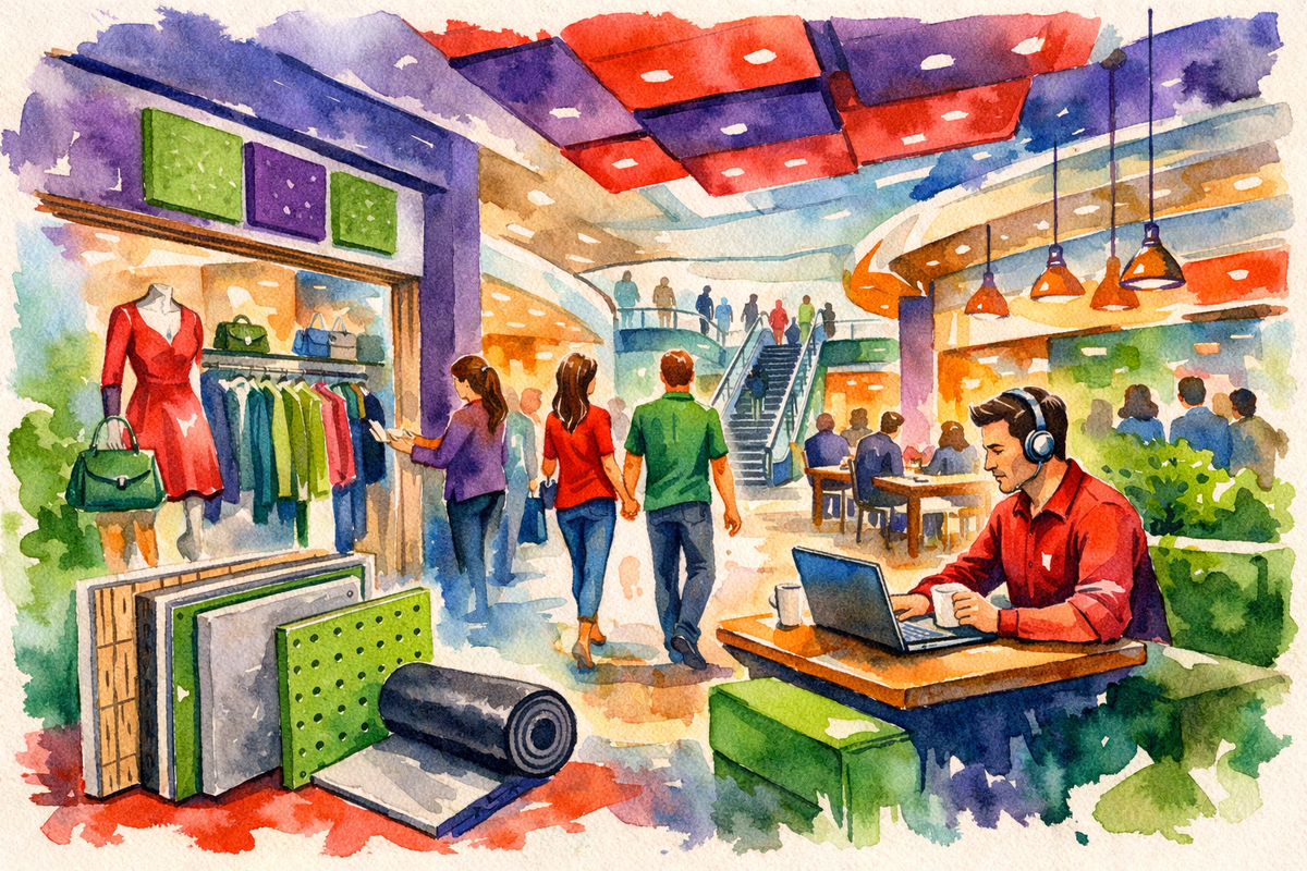 Современный торговый центр — это не просто место для покупок. Это пространство впечатлений, где люди проводят часы: гуляют, общаются, выбирают, отдыхают. И именно уровень шума всё чаще становится тем фактором, который либо располагает к покупкам, либо заставляет посетителя уйти раньше, чем планировалось. Гул голосов, музыка из соседних магазинов, шум вентиляции, шаги, эхо — всё это напрямую влияет на настроение покупателей и, как следствие, на выручку арендаторов. В этой статье разберёмся, зачем торговым центрам и бутикам нужна профессиональная шумоизоляция, какие зоны требуют особого внимания и какие решения реально работают на практике. На первый взгляд кажется, что шум в ТЦ — вещь неизбежная. Люди, фудкорты, эскалаторы, рекламные ролики. Но исследования в сфере ритейла показывают: Для бутиков ситуация ещё чувствительнее. Премиальный сегмент, дорогие интерьеры, персональный сервис — и при этом гул и эхо, как в подземном переходе. Контраст разрушает впечатление от бренда. Основной ист