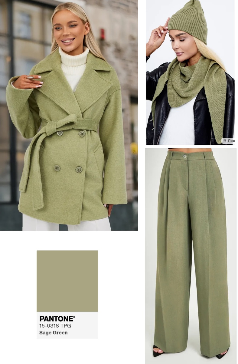 По ощущениям весна не очень скоро, но я предлагаю быть к ней готовой и перебрать гардероб сейчас, чтобы понять, чего не хватает или хочется. А нужно это для того, чтобы закрыть недостающие позиции на распродажах, которые сейчас везде и не потратить потом лишнего в сезон. Один из моих любимых и довольно простых способов выглядеть стильно и модно- это выбирать актуальные базовые вещи в трендовых оттенках сезона. Поэтому я продолжаю знакомить вас с палитрами трендовых и базовых оттенков. Сегодня на очереди зеленые - их много, они разные в грядущем сезоне - и каждая сможет подобрать себе по вкусу и цветотипу. Для большей практической пользы я сделала подборку удачных вещей с Wildberries с артикулами и рассказала, кому что подойдет. Светлый, чуть припыленный теплый оттенок. Отлично сочетается как с пастельными оттенками - трендовыми лососевым, банановым, так и с темными - бордовым или сливовым, например. Идеально подойдет мягкой осени Полупальто 328051515 - актуальный фасон и длина. Хорошо
