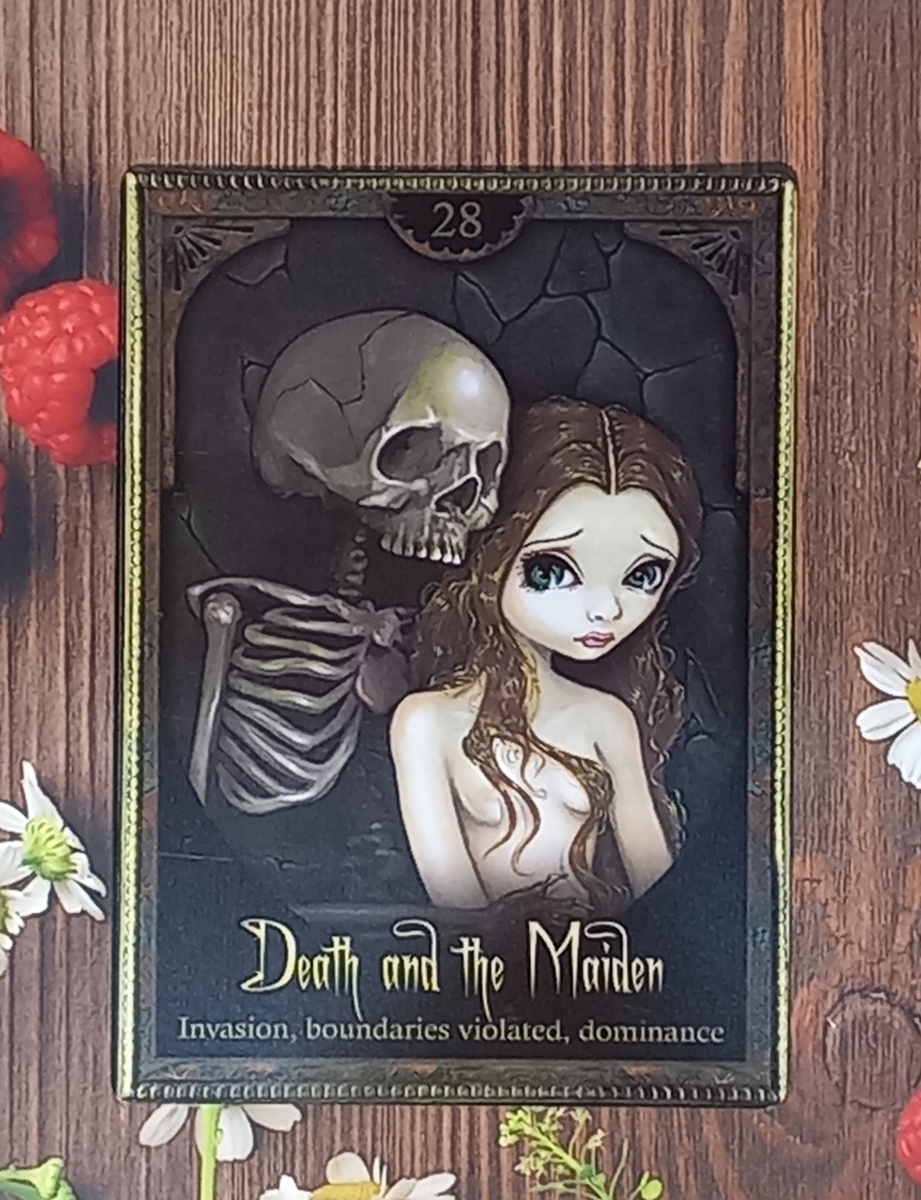 Смерть говорит : "Я полон потребностей. Я жажду жизненной силы. Я должен быть рядом с этой молодой девушкой, поскольку у неё есть всё, чего я жажду, и всё, что я не воссоздал для себя непосредственно. Я буду просто держаться её, и брать от нёе то, что я хочу. Её теплоту, её энергию, её эмоции и её красоту. Она является продолжением меня. Что я хочу, то я возьму. И я тоже люблю её. Очень. Так сильно, что я могу поглотить её полностью".