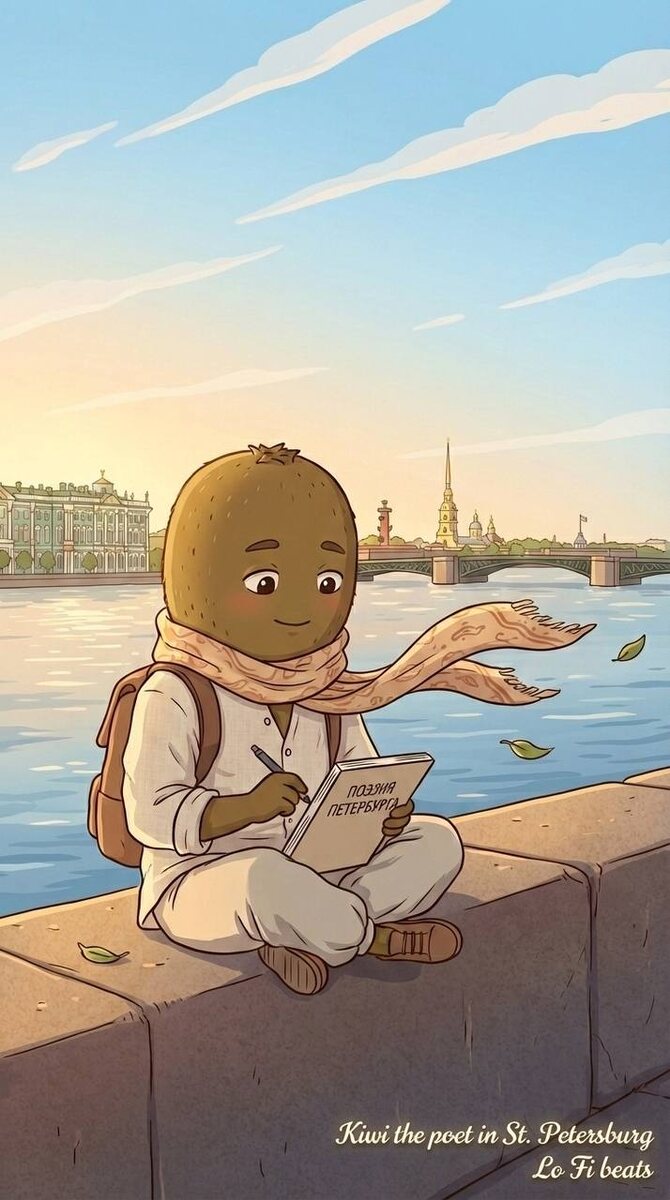, добавляла слова, настроения, чтобы услышать именно тот Санкт-Петербург, который знаю я. Для иностранцев этот город всего лишь город в России, но он больше чем Россия, уникальность его в эклектике. Поэтому как бы я не заморачивалась изначально с русскими инструментами, они не ложились на мою задумку. Киви-поэт, родом из Китая, он приехал, чтобы набрался поэтического вдохновения от этого загадочного города. Когда услышала этот вариант, сразу поняла, это оно. Восторг, благодарность, это чудо) не перестаю восхищаться тем, что стало доступно людям, волшебство! Наверно, настанет день, и люди будет спокойно относиться к этой технологии, как к чему-то обыденному, как мы относимся сейчас к электричеству и водопроводу, даже самолетам, даже интернету, хотя, когда-то это была фантастика, сверх изменения. Но я отвлеклась. Итак, Мистер Киви, поэт из Китая, нашедший вдохновение в мистике и красоте Петербурга.