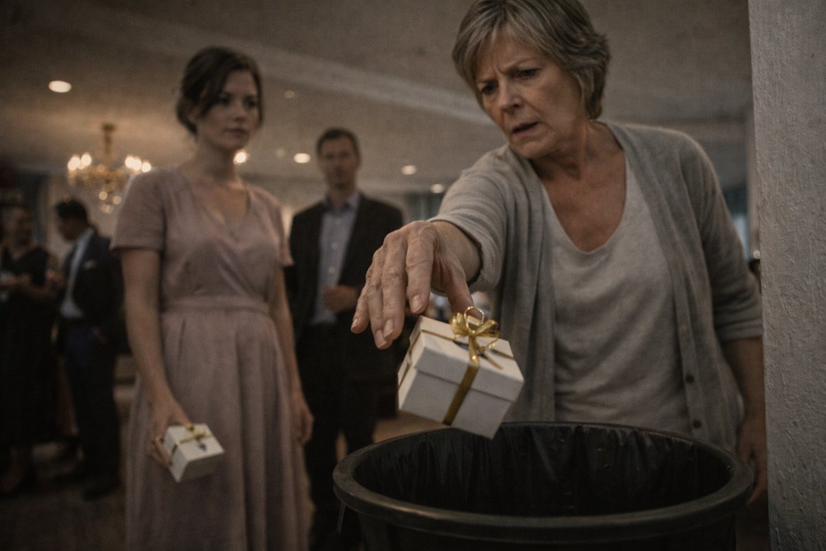 Приняв от невестки небольшую коробочку, свекровь даже не улыбнулась. Она взвесила её в ладони, будто проверяя на ценность, и усмехнулась. — Это что? — громко спросила она, так чтобы услышали все гости. — Очередная безделушка? В зале повисла пауза. Музыка играла фоном, официанты замерли у стен, а взгляды медленно потянулись к Лере. Лера стояла спокойно. В простом платье, без украшений, с аккуратно собранными волосами. Её давно привыкли называть «нищей невесткой» — не вслух, конечно, но достаточно громко, чтобы она это чувствовала. Не из богатой семьи. Без связей. Без приданого. — Это от чистого сердца, — тихо сказала она. Свекровь рассмеялась. — Сердцем сейчас ничего не купишь. И, не открывая коробочку, она демонстративно бросила её в мусорное ведро у стены. Кто-то неловко кашлянул. Кто-то отвёл взгляд. Муж Леры побледнел, но не сказал ни слова. Лера не сдвинулась с места. — Вы закончили? — спокойно спросила она. Свекровь удивлённо посмотрела на неё. — А что, ещё что-то будет? Лера подо