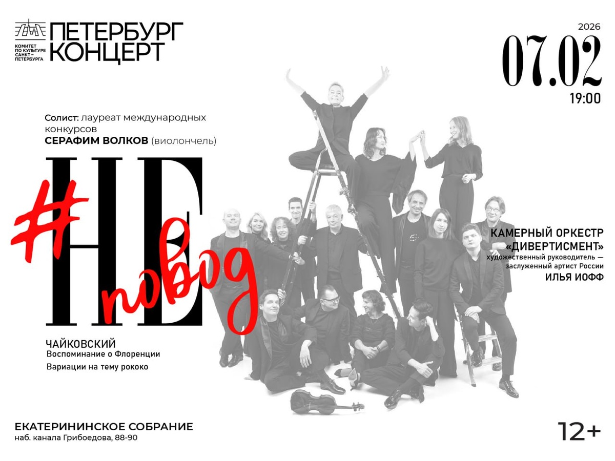 ! В 2025 году музыкальный мир отмечал 185-летие со дня рождения Петра Чайковского. По этому случаю было организовано множество событий, представляющих разные грани его творческого портрета. Специального повода для исполнения музыки Чайковского в феврале 2026 года нет. Но стоит ли его искать, чтобы еще раз соприкоснуться с наследием композитора, о котором без преувеличения можно сказать «наше всё»? Камерный оркестр «Дивертисмент» под руководством з.а. России Ильи Иоффа объединил в программе два известных произведения Чайковского — «Воспоминания о Флоренции» и «Вариации на тему Рококо» — звучащих в концертных залах с завидной регулярностью. Однако оба сочинения столь совершенны и одухотворенны, что каждая «встреча» с ними обещает исполнителям и слушателям удивительные открытия и тончайшую палитру чувств и ощущений. Солист — лауреат международных конкурсов Серафим Волков (виолончель) БИЛЕТЫ: 7.02 | 19:00 | #Неповод