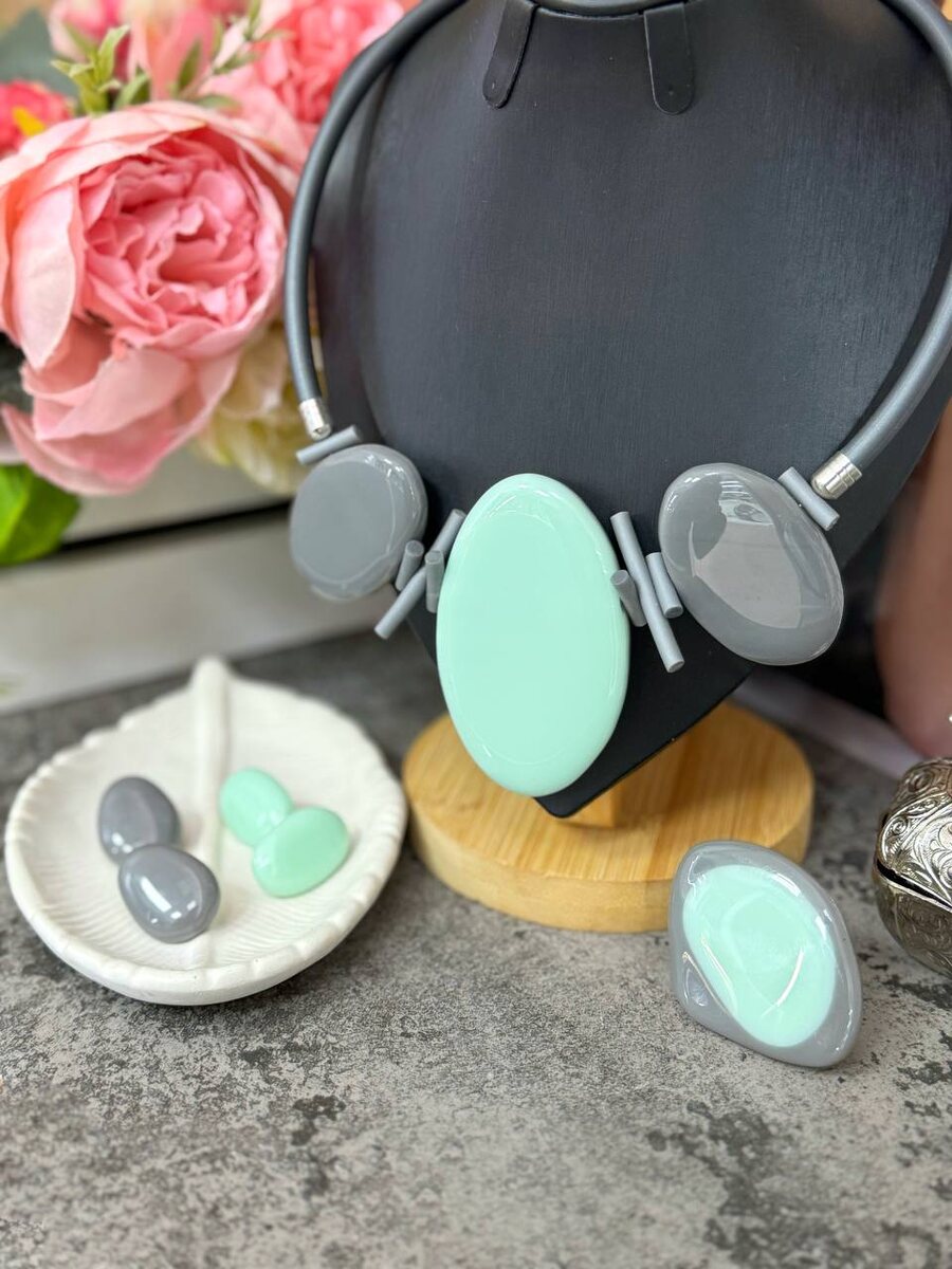 🩶 Это украшения, в которых всё решает оттенок. Серый — спокойный, дымчатый, очень благородный. Мятный — свежий, лёгкий, с ощущением воздуха. Муранское стекло всегда живое: каждый элемент ловит свет по-своему, поэтому комплект смотрится объёмно и свежо. Колье с серыми и мятными элементами собирает образ целиком — особенно красиво будет смотреться с шёлковой рубашкой, серым трикотажем или объемным свитером. Кольцо поддерживает цвет, а серьги позволяют играть настроением: сегодня — серые, завтра — мятные.⭐️ Колье 4800 Кольцо 2700 Серьги 1650 ✨Нажмите для заказа ✉️ Нажмите чтобы задать вопрос