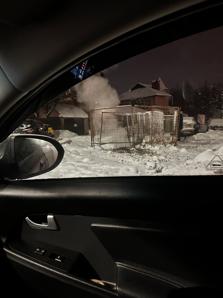 На Строителях где делали ремонт, валит пар, похоже что-то прорвало.