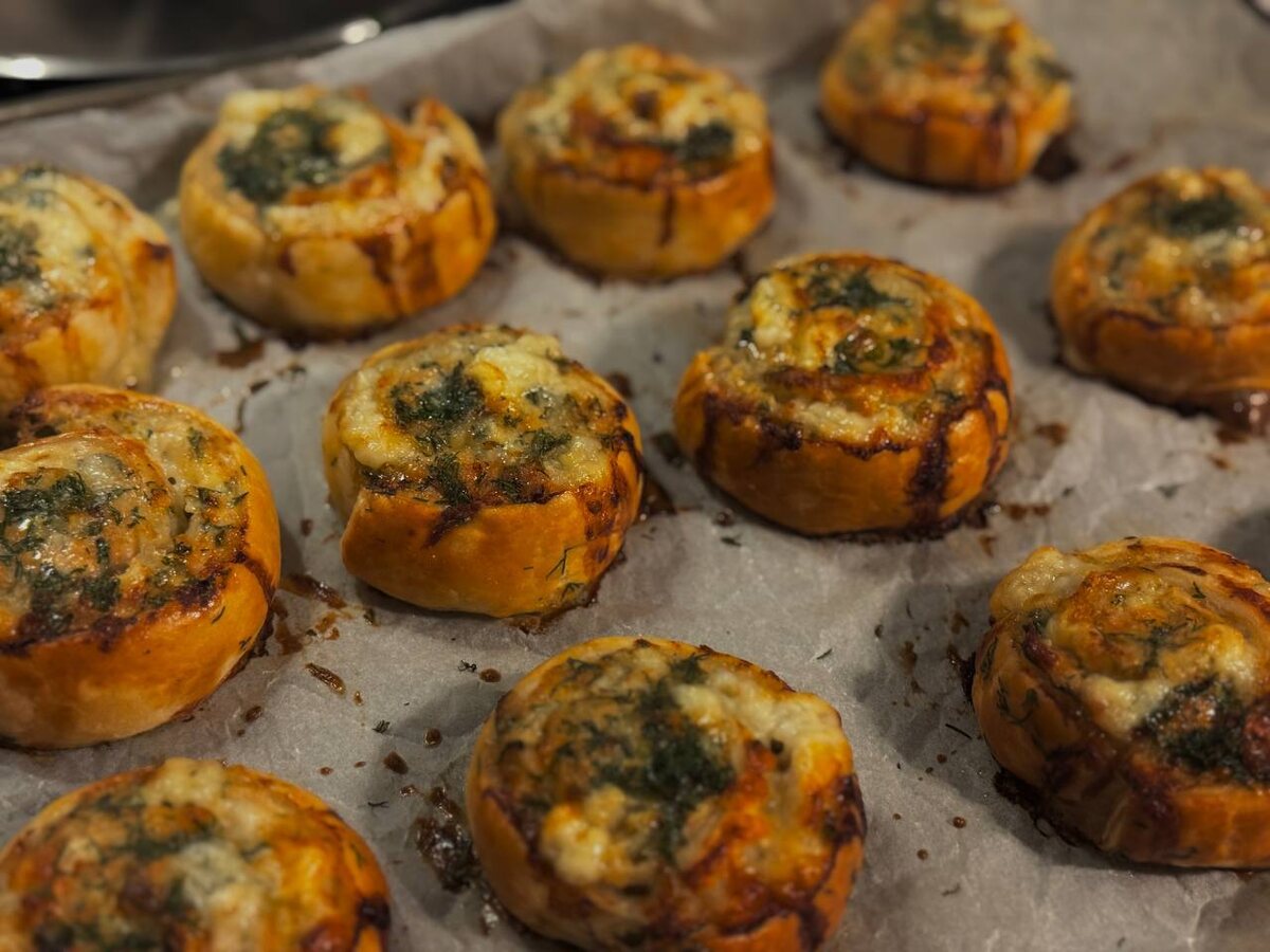 Совершено незатейливо, но вкусно, красиво и сытно Ингредиенты: 1️⃣ Фарш (у меня из куриных грудок) 2️⃣ Сыр сулугуни или моцарелла 3️⃣ Пластинка слоёного теста 4️⃣ Зелень петрушки 5️⃣ Зелень укропа 6️⃣ Куриное яйцо Приготовление: 1. Тесту дать оттаять и раскатать его до толщины 2-3 мм 2. Слоем в 0,5 см намазать фарш смешанный с зеленью петрушки. Посолить, поперчить 3. Таким же слоем присыпать тёртым на крупной тёрке сыром 4. Свернуть рулетом и острым ножом нарезать на одинаковые, по толщине (3 см) ломтики 5. Посыпать сверху укропом и помазать взбитым яйцом 6. Выложить на противень, застеленный пергаментом. 7. Выпекать при 190 градусах 30 минут. Режим низ/конвекция. Ангела за трапезой! Ваш ПП - Православное Питание - канал о пище, не только телесной, но и духовной Найти похожие блюда Вы сможете нажав на слово, перед которым стоит символ #⬇️ Либо воспользоваться разделом «ПОИСК РЕЦЕПТОВ»⬆️ #скоромное #пирожки #тесто #фарш #сыр #выпечка #просто #духовка Наш канал в MAX