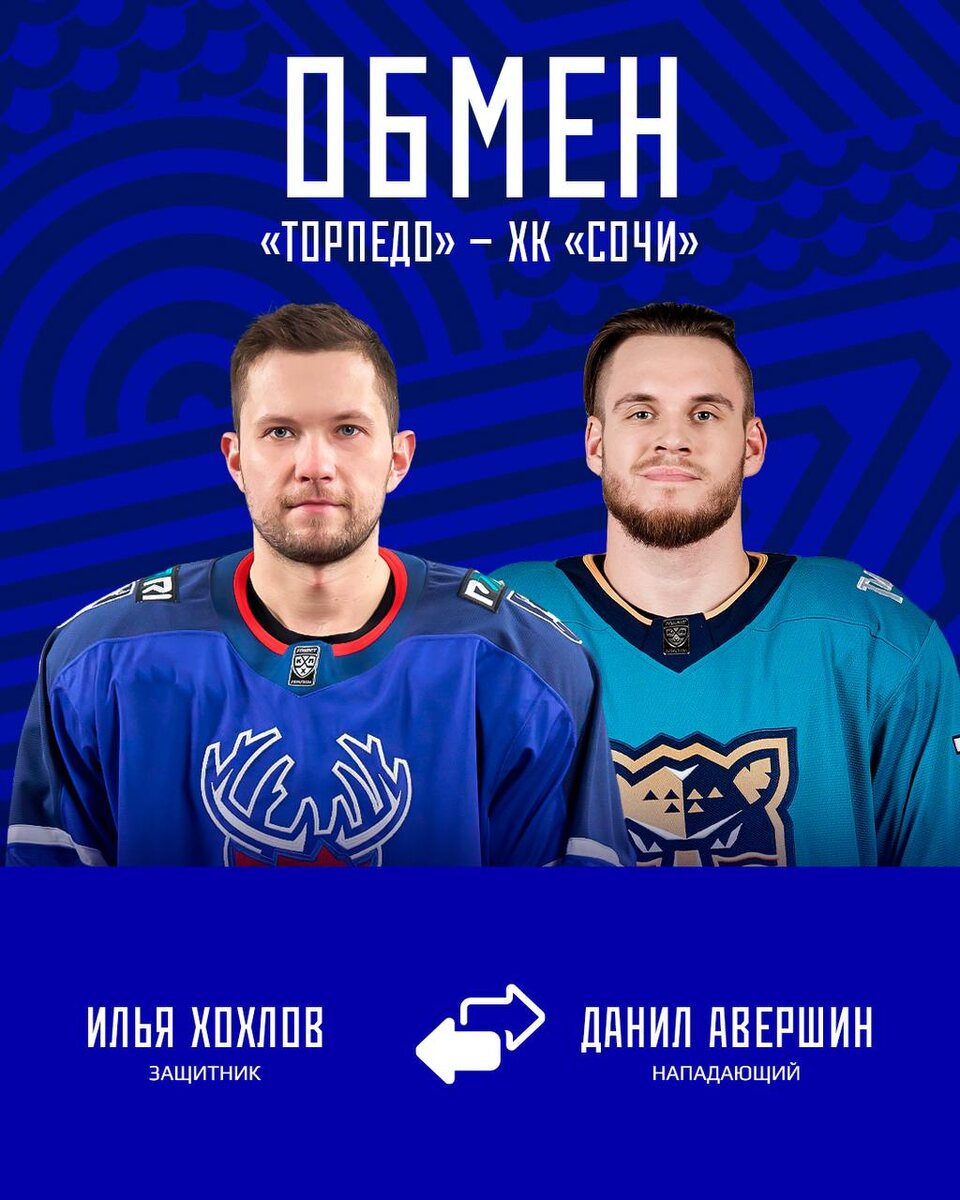 В результате сделки двусторонний контракт с нашим клубом подписал нападающий Данил Авершин. В обратном направлении отправился защитник Илья Хохлов. Приветствуем Данила в Нижнем Новгороде и желаем уверенной игры, прогресса и ярких матчей в форме «Торпедо» 👏 Благодарим Илью Хохлова за время, проведенное в нашем клубе, самоотдачу и профессионализм. Желаем успехов на новом этапе карьеры и будем рады новым встречам 🤝