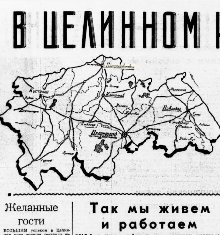 "Вечерняя Москва" НА ТЕРРИТОРИИ свыше 600 тысяч километров от Южного Урала до Алтая — раскинулся Целинный край. Франция, Бельгия и Голландия, вместе взятые, свободно смогли бы тут разместиться. В состав края входят Целиноградская, Северо-Казахстанская, Кокчетавская, Кустанайская и Павлодарская области. В 12 городах, 28 рабочих поселках, 67 сельских районах с 763 селами и аулами живут свыше трех миллионов человек. За последние воды Целинный край превратился в крупнейшую житницу страны, имеющую 685 совхозов, 107 колхозов. За последние годы совхозы и колхозы края сдали государству несколько миллиардов пудов хлеба. Сейчас труженики целины борются за выполнение поставленных январским Пленумом ЦК КПСС задач: производить зерна 1100—1200 миллионов пудов, мяса — 800—900 тысяч тонн, молока — 2 миллиона тонн, яиц — 570 миллионов, шерсти — 30 тысяч тонн.