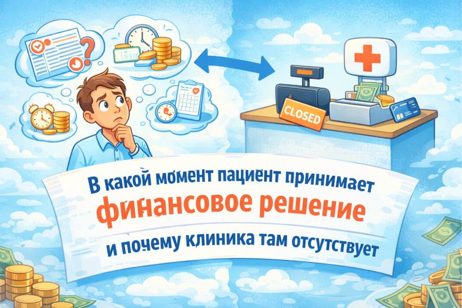 Проблема в том, что реальный момент принятия финансового решения клиника почти всегда упускает. Он происходит раньше, в менее очевидной точке, где нет денег, но именно там формируется будущая выручка.