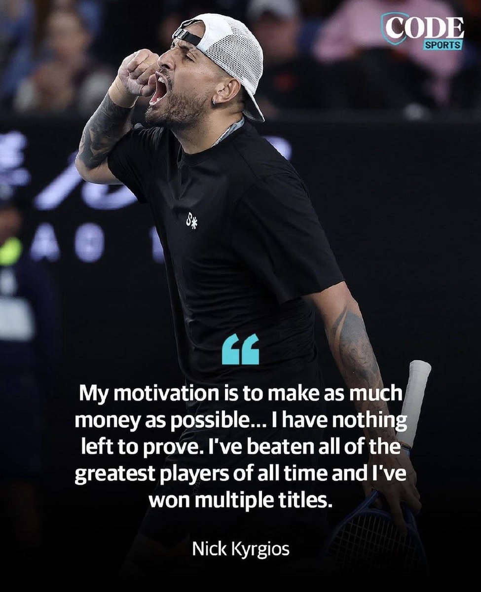 Nick Kyrgios о своей мотивации: «Моя цель — заработать как можно больше денег... Мне больше нечего доказывать. Я побеждал всех величайших игроков всех времён и выигрывал множество титулов».