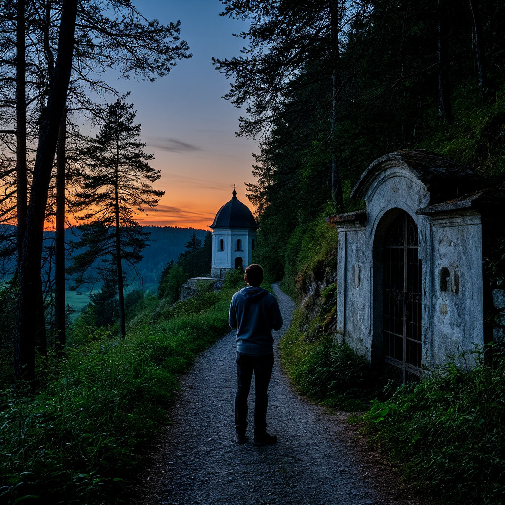 Из скита я вышел, когда солнце уже давно скрылось за горизонтом, и лишь бледный серп луны освещал узкую тропинку. Перекрестившись, я вдохнул прохладный ночной воздух, наполненный запахом хвои и влажной земли. В этот момент мимо меня, словно призрак, пронесся молодой мужчина. Увидев мой жест, он резко затормозил, чуть не подпрыгнув от неожиданности.