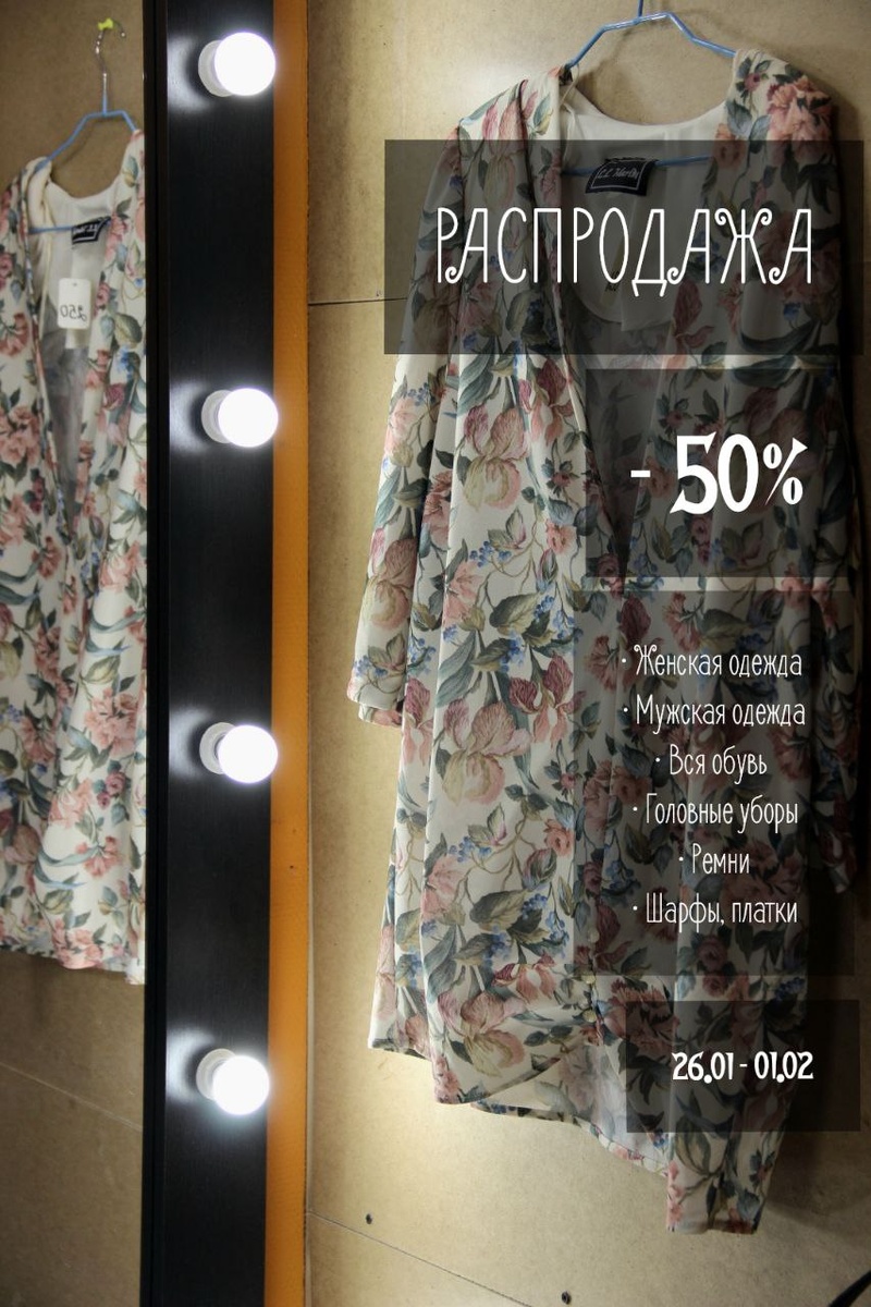 ! - По идее да, не может. Но это не точно 🤔😄 ВСЮ следующую неделю: ⭐️ 26 января - 1 февраля ⭐️ 🔥РАСПРОДАЖА -50%🔥 На что скидка? • Женская и мужская одежда и обувь • Головные уборы • Ремни • Шарфы, платки Где? 📍 ул.Кржижановского, 24/35к3, вход со двора Часы работы? 📍 12:00 - 20:00 ВАЖНО: ⚠️ Товары за витриной не участвуют в акции ⚠️ Вещи не откладываются и не бронируются до акции и в её период ✅ Скидка идёт от указанной стоимости Всегда Ваша, Антресоль ☃️ В этом посте есть большое видео, которое не загрузилось в Дзен. Откройте оригинал поста в телеграме, чтобы его посмотреть