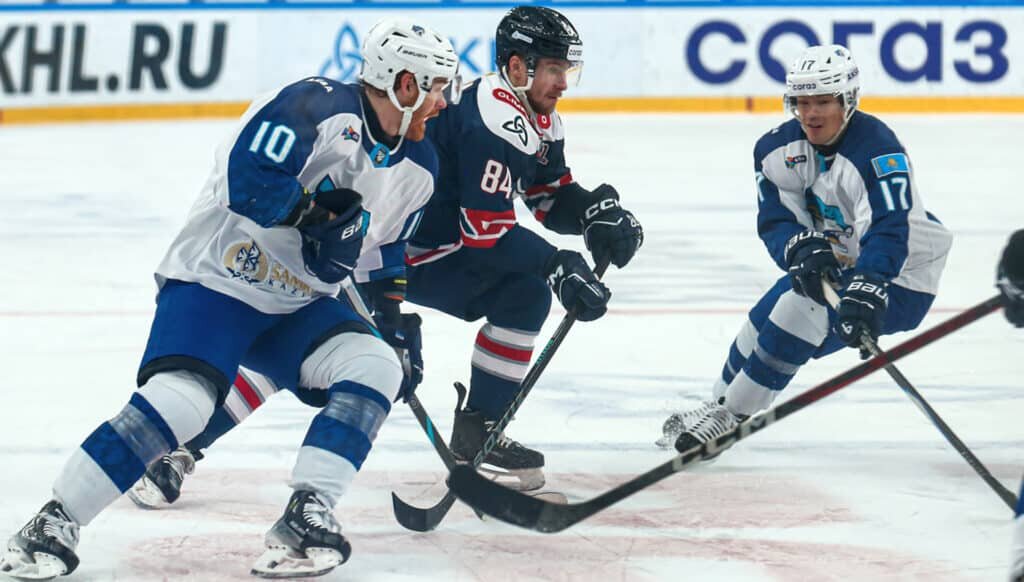 Хоккеисты «Барыса» едва не перевели матч в Нижнекамске в овертайм, но судьи не засчитали шайбу, заброшенную за пять секунд до сирены. Казахстанцы вновь, четвертый раз в КХЛ-2025/26, проиграли «Нефтехимику». 2:3, 2:5, 0:1, 2:3. КХЛ-2025/26 Восточная конференция. 24 января 🏒 НЕФТЕХИМИК (Нижнекамск, Россия) – БАРЫС (Астана, Казахстан) 3:2 (1:0, 0:0, 2:2) Голы: Профака (Хоружев, Дергачев) 12:58-бол (1:0), Белозеров 41:31-бул (2:0), Симонов (Уолш, Масси) 51:37 (2:1), Шафигулин 58:07-п.в (3:1), Уилман 59:36-6х5 (3:2) До третьего периода команда Михаила Кравца выигрывала только в драках. Едва началась вторая двадцатиминутка, как Макс Уиллман сошелся в боксерском поединке с Никитой Артамоновым, а Мэйсон Морелли с Ильей Пастуховым. Наши американцы в кулачном бою показали себя искушеннее оппонентов. Чуть позже Иэн Маккошен едва не нокаутировал российского канадца Луку Профаку. Как ни жаль, но в хоккее за это очков не дают. А вот с голами лучше дела обстояли у хозяев. В первом периоде упомянутый