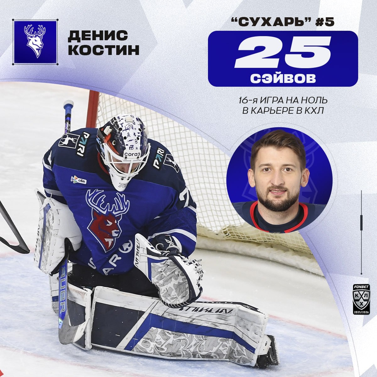 🦌 Денис Костин поставил «сухари» на поток: третья игра на ноль в пяти последних матчах!