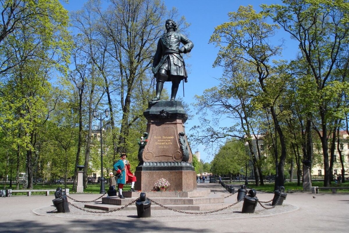 Ф. Беллинсгаузен, который оказался, мягко говоря, не в восторге от положения дел в городе-порте. Улицы Кронштадта были покрыты грязью и лужами, а пустыри, поросшие травой, портили внешний облик города. Беллинсгаузен попросил денег на обустройство, но получил отказ, поэтому решил профинансировать все работы самостоятельно. После того как в городе был наведен порядок, адмирал приступил к созданию Петровского парка, саженцы для которого выбирал самостоятельно. По замыслу Беллинсгаузена центром композиции должен был стать памятник Петру I, дизайн которого создал французский скульптор Теодор Жак, а отлил П. К. Клодт. К Петру I отношение при СССР было скорее положительное, поэтому памятник убирать не стали, тем не менее скульптура лишилась шпаги в 1961 году, которую затем пришлось отливать заново. 🤩 Проще говоря. Питер