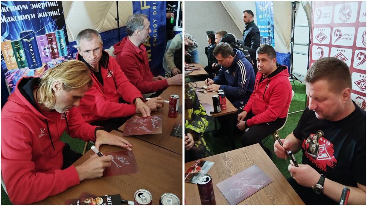 Болельщики «Спартака» выстроились в очереди за автографами и фото с легендами клуба. Ринат Дасаев, Олег Романцев, Валерий Шмаров, Александр Панов и другие звёзды клуба вышли к болельщикам перед товарищеским матчем с любительской командой фанатов «КБ Воронеж».