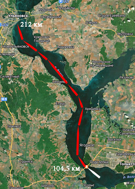 Уважаемые читатели, в предыдущей статье мы с Вами в полночь расстались у Климовского моста в Самарской области, а утро встречаем уже в Ульяновской. Протяжённость ночного перехода составила около 108 километров. Я уже писал ранее, что круиз на теплоходе «Принцесса Анабелла» должен проходить по маршруту Самара – Тетюши – Самара, но из-за штормового предупреждения крайней точкой круиза вместо Тетюшей стал Ульяновск. Для меня это изменение было на руку: Тетюши я уже посещал, а в Ульяновске бывал только по служебным делам, во время которых было не до экскурсий. Восход солнца на Куйбышевском водохранилище. До Ульяновска 2 часа хода, это примерно 25 километров. Через полтора часа на правом берегу в поле зрения появился Ульяновск. Напротив, на левом берегу Волги, севернее села Красный Яр Чердаклинского района видны ветроэлектрические установки («ветряки») ветроэлектростанции, их ещё называют ветропарками. Прямо по курсу вдали – Императорский мост. Из-за изменения программы круиза его проходить