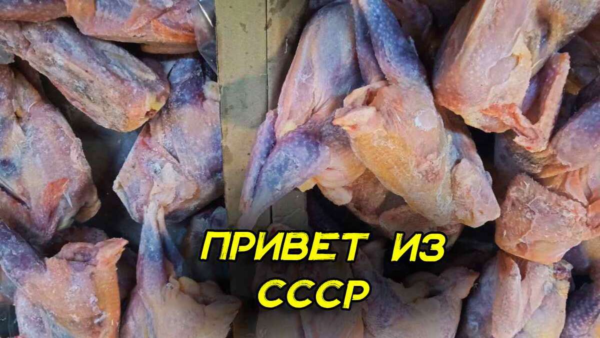 Покажу сегодня не только кур, но и фото трешрыб. Ко застал те времена, то помнит какие там продавались курочки, которых еще не всегда можно было достать. На днях нашел нечто подобное в Светофоре (это магазин низких цен для тех у кого очень много денег). Также покажу страшных рыб и их цену. Оставьте лайк сразу, чтобы не забыть и подпишитесь. Так вы поддержите мой труд на канале Подслушано СР. Спасибо. Куры из СССР у многих ассоциируются с «тощими», «синими» и жёсткими на вкус. Это не была специальная порода с синим мясом. Такой цвет мог появляться из-за очень малого количества подкожного жира и кровеносных сосудов, которые становятся заметнее на худой тушке после ощипывания и заморозки. Лишний жир под кожей даёт жёлтый оттенок, а его отсутствие более бледный, с лёгким синеватым тоном. На птицефабриках СССР основной акцент делался на яйценоскость, а не на мясной тип: большинство кур были «яичными» породами, с маленькой живой массой тела. Технологические факторы того времени тоже играли