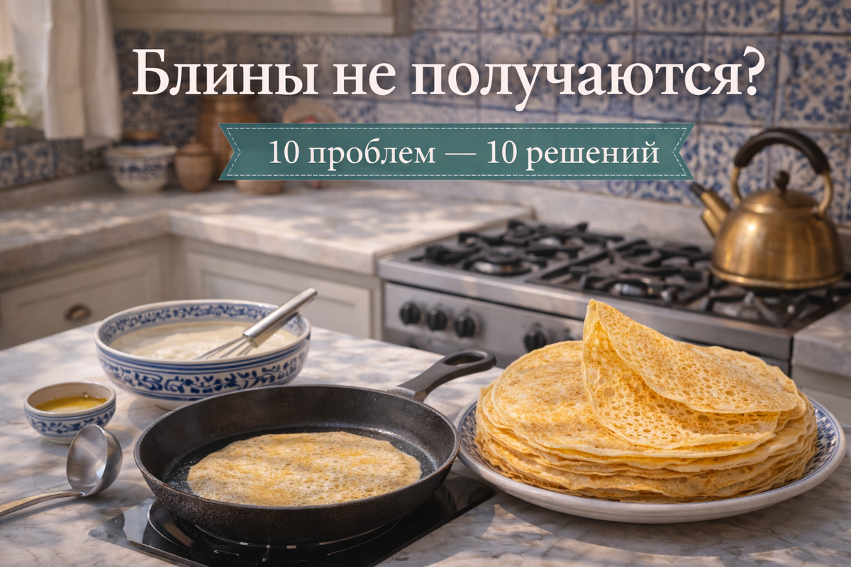 Без морали, без «руки не из того места». Блины — это просто тесто + температура + сковорода. Если где-то сбой — всё начинает «ломаться». Сейчас отловим. Перед тем как чинить тесто, ответьте себе на три вопроса: Если где-то «нет» — часто в этом и причина. Симптом: тянется за лопаткой, рвётся, остаётся “клей”.
