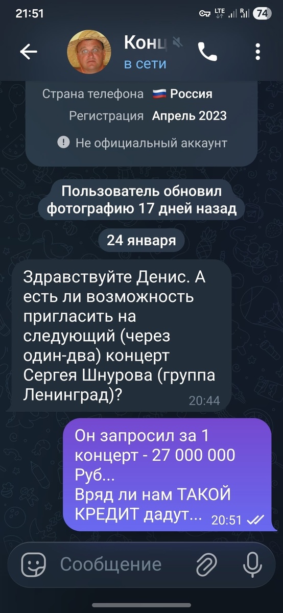 б. на нашем концерте... Но❗ Есть выход ➡️ ➡️ Мы раздали более 25 000 билетов на наши последние концерты и если каждый скинется по 1000 Руб. , то мы его проведём легко! Более того , возьмём зал с большей вместимостью и окупим концерт и отдадим деньги обратно! Как Вам такой план? Кто в теме? 🇷🇺 Сорокин Денис - Детский писатель. Предприниматель. Волонтёр 💬 Написать мне личное сообщение