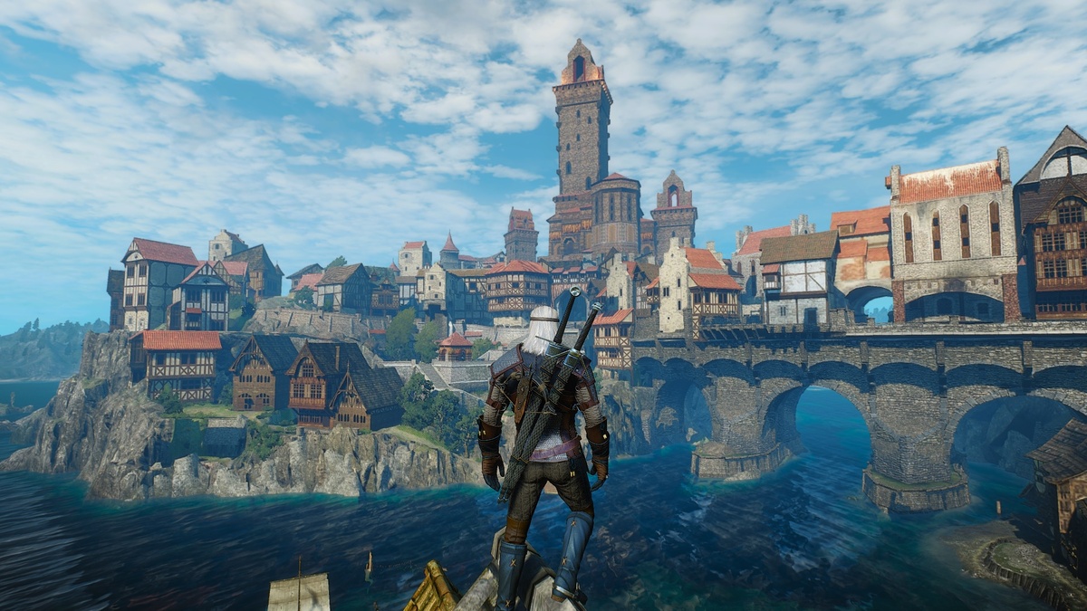 Приветствую всех любителей Мира Ведьмака! С предыдущими публикациями можно ознакомиться в подборке «Технопарк и фантазии». ******* «... Я – Кот, гуляю один, и все места для меня одинаковы...» Редьярд Джозеф Киплинг Седьмая часть серии статей "Тропою новиградского кота" планировалась стать последней на эту тему. А нет! Проходя сегодня в игре под аркой ставшей непреодолимым препятствием для длинной прогулки по крышам внутренней застройки района Серебряного города, с сожалением посмотрел на два оставшихся непокорёнными дома. Текстуры крыши арки, по которой можно было на них попасть, оказались "прозрачными", и, ступив на неё, проваливаешься вниз, откуда подняться наверх невозможно. Перепрыгнуть коварную крышу нельзя, и других строений, примыкающих к этой паре домов нет. Есть дом напротив через улицу, и надежда оставалась только на него. Единственный путь у нему - через соседний дом и арку (опять!) их соединяющую. Чтобы попасть на крышу нужного дома, поступим следующим образом. Используя