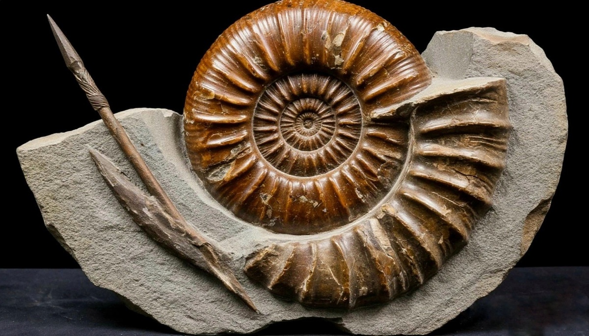Я подошел еще ближе и всмотрелся в окаменелость. И сразу же увидел то, что хотел мне показать Валерич. Диаметр раковины был не меньше полуметра, а в его самой толстой части застрял наконечник копья. Ошибиться было невозможно: обломок древка, полоска кожи, которой крепился наконечник - все превратилось почти в такой же камень, как и сам аммонит.