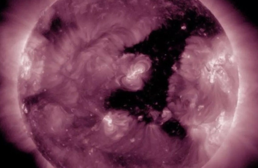 На Солнце образовалась корональная дыра диаметром 1 000 000 км, имеющую форму цифры один