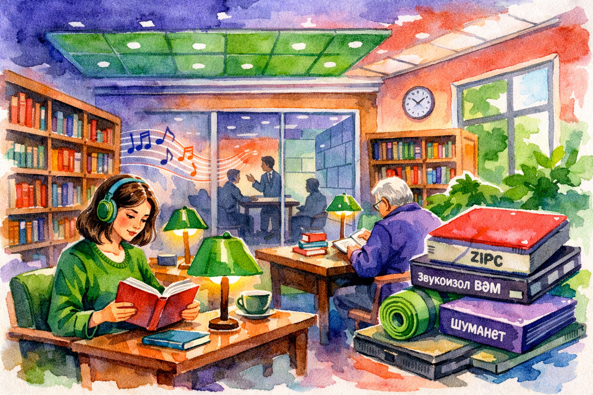 Библиотека и читальный зал — это пространства, где тишина не просто желательна, а критически важна. Любой посторонний звук — шаги, разговоры, шум с улицы или из соседних помещений — снижает концентрацию, утомляет и буквально мешает читать и работать с текстами. Именно поэтому профессиональная звукоизоляция библиотек сегодня становится не роскошью, а обязательным элементом современного общественного пространства. Разберёмся простым языком: откуда берётся шум, какие решения действительно работают и как создать в библиотеке ту самую «звенящую тишину». Даже если посетители ведут себя тихо, источников шума всегда больше, чем кажется: Важно понимать: шумоизоляция и акустика — разные задачи.