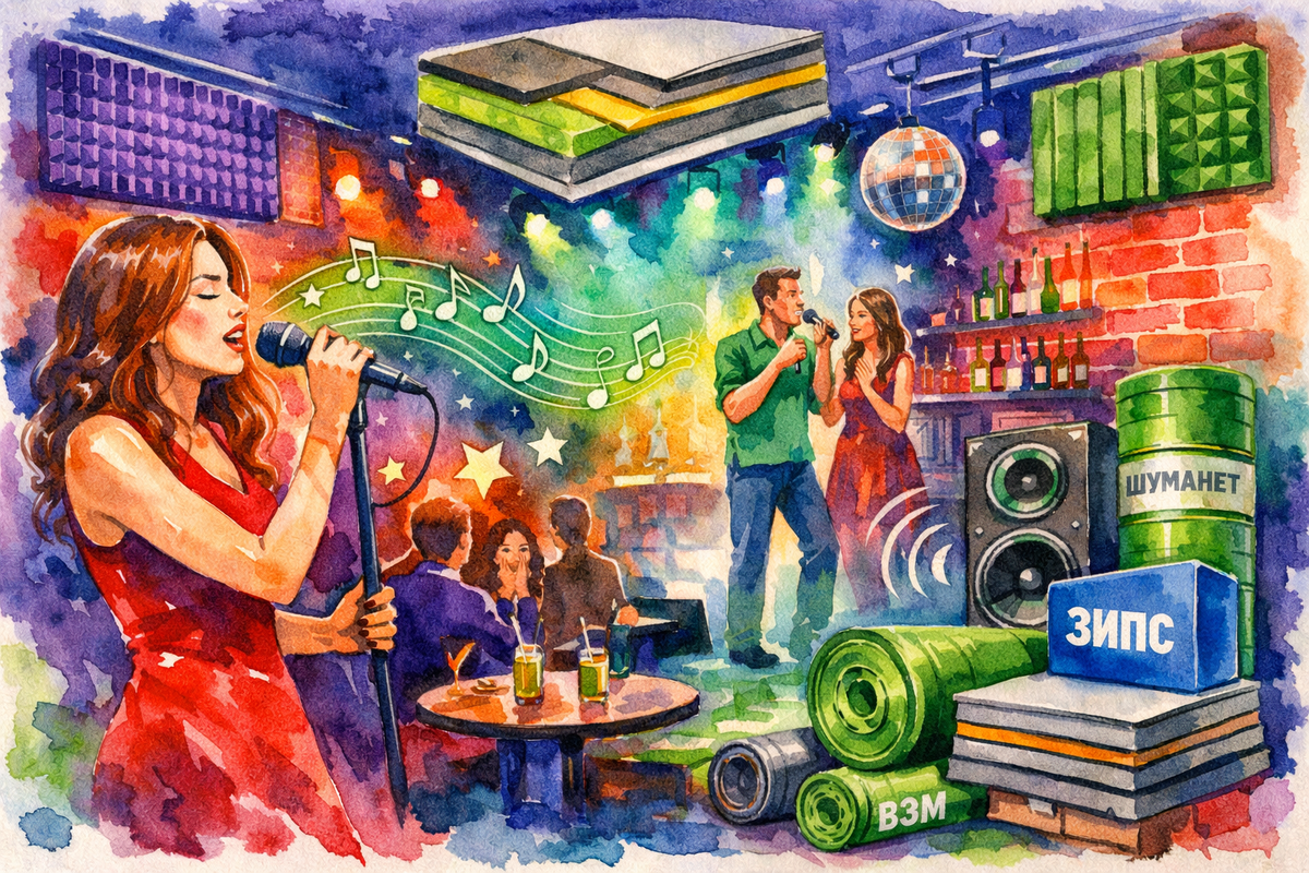 Караоке-бар — это место, где люди приходят не просто посидеть, а петь, слушать и получать эмоции. И здесь есть важный нюанс, который владельцы таких заведений иногда недооценивают: качество звука зависит не только от микрофонов, колонок и пульта, но и от правильно выполненной звукоизоляции и акустики помещения. Если в караоке-баре «гудит», голос теряется, слышно соседний зал или улицу — гости быстро уходят, а негативные отзывы появляются быстрее, чем новые клиенты. Разберёмся, как звукоизоляция напрямую влияет на звучание караоке и какие решения реально работают. Типичная ситуация: вложились в профессиональное оборудование, а результат всё равно не радует. Причины почти всегда одни и те же: Без звукоизоляции и акустической коррекции звук не контролируется, а значит, вокалисту сложно петь, а гостям — приятно слушать. Здесь важно не путать понятия: Для караоке-бара важно и то, и другое. Только акустические панели без звукоизоляции не спасут от жалоб соседей. А только звукоизоляция без ак