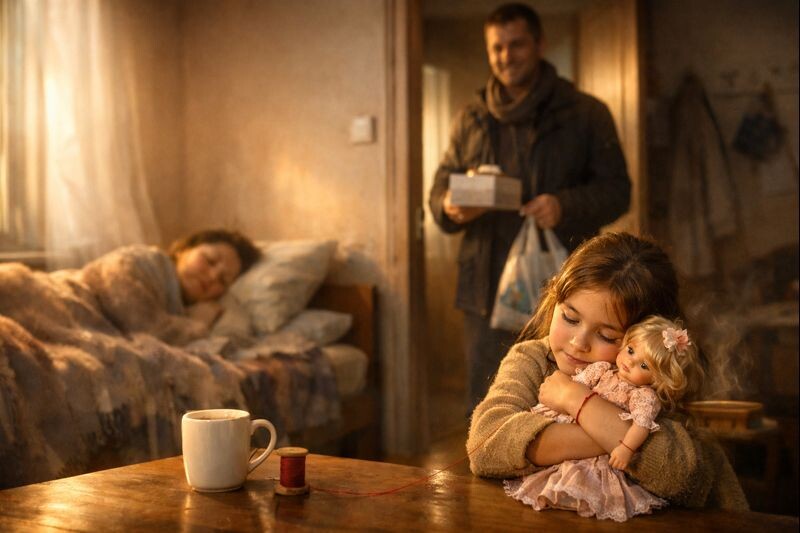 — Разрешите вашей дочке оставить мой подарок. У меня кукол много, а ребёнку радость. Простите, мне пора.