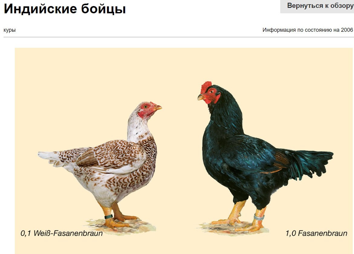 : Чисто английская порода, созданная на основе породы Асил. Завезена в Германию в 1882 году. Позже выведена в США в белом и желтом цветах с использованием белых малайских или желтых кур пород Кохинхин и Шамо. Значение: Высокая мясная продуктивность и отличная пригодность для выведения гибридов бройлеров, особенно белой, несколько более высококлассной окраски. Общее впечатление: Очень крупная, очень широкая, мускулистая курица среднего роста, с очень широкой стойкой, сильными ногами, несколько прямой осанкой и очень жестким, блестящим оперением. Обладает сварливым характером