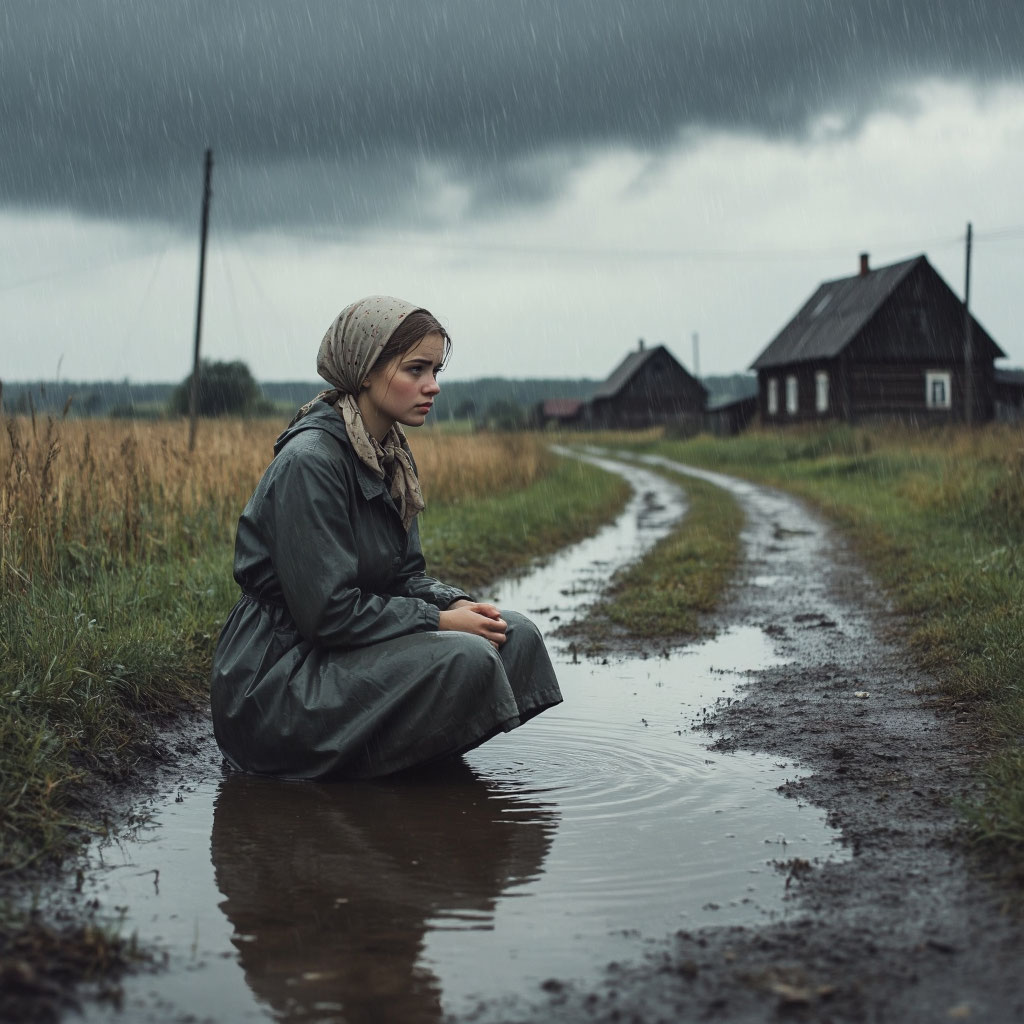 В тот день Зинка возвращалась особенно уставшей. Едва она свернула на свою улицу, как небо разверзлось — хлынул ливень. Тропинка мгновенно превратилась в ручей, ноги скользили…