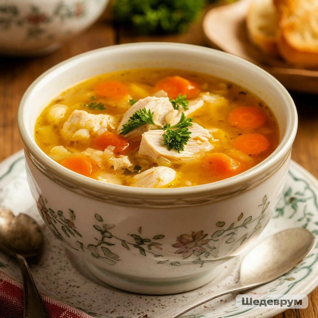 Возьмите кастрюлю объемом 1 литр, положите в нее курицу и целые овощи, и сварите бульон.
