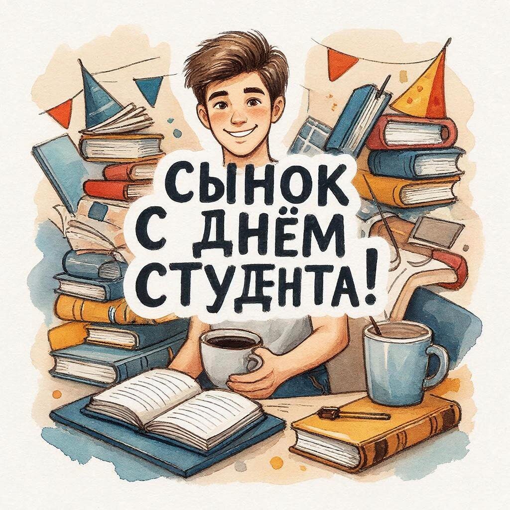 Дорогой наш сын! Поздравляем с Днём студента — днём человека, умеющего превращать одну ночь перед экзаменом в целый семестр знаний! Желаем тебе, чтобы эта суперспособность только крепла. Пусть твоя удача на зачётах будет такой же постоянной, как потребность в новом блоке конспектов. И пусть твоё общежитие будет не просто жильём, а штабом самых верных друзей и генератором незабываемых историй, которыми ты будешь нас кормить при каждой встрече. Гордимся тобой!