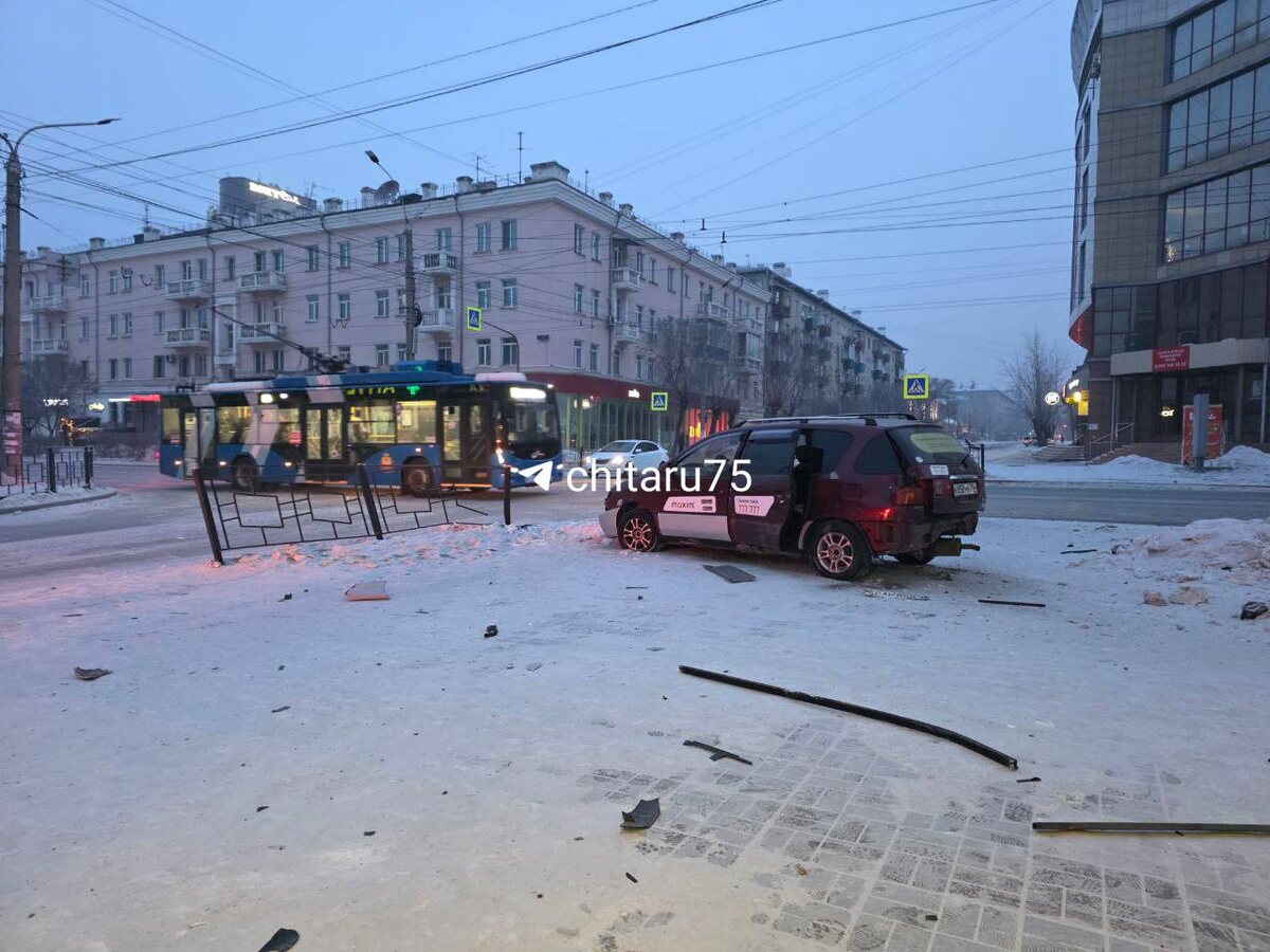 В краевом управлении ГАИ рассказали, что авария произошла около 6 часов утра. По предварительным данным, автомобили после столкновения наехали на препятствия. Одного из водителей увезли в больницу. По словам очевидца, Toyota Ipsum после удара протаранила ограждение около ТЦ «Панорама», а Subaru Forester сбил рекламный баннер на остановке. Фото: очевидец 📌📌 Предложить новость