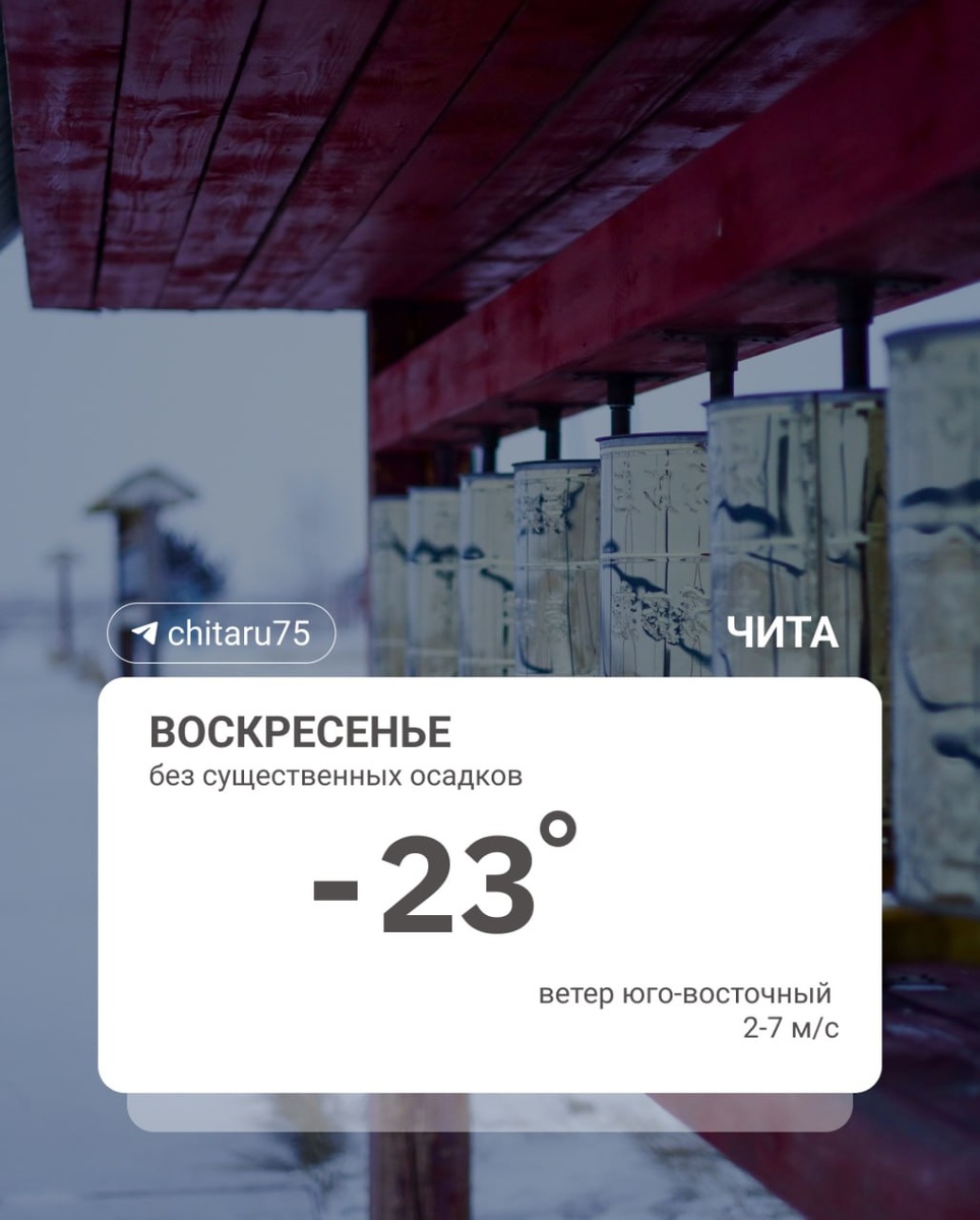 Ночью в Чите было до -39 градусов. По краю — до -40, местами -34 градуса, по восточным, северным районам — до -45.