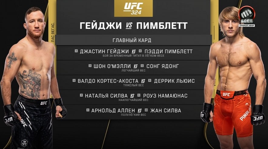 Вот такой главный кард ожидает нас на UFC 324