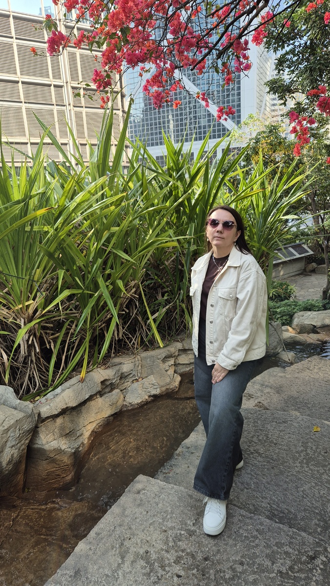 Вчера мы случайно забрели в Hong Kong Park. Это большой парк с дорожками, фонтанами, разными малыми архитектурными формами, с горками и лестницами, с музеем чайной посуды. Яркая зелень в январе завораживает. Особенно когда у тебя дома эти
