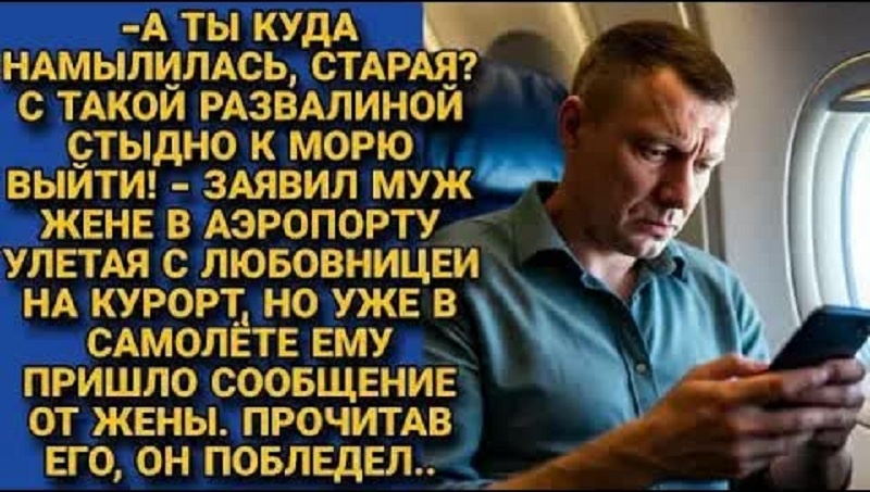 — Куда намылилась, старая? Бросив жену, думала, я с тобой полечу? Да мне стыдно с такой развалиной на пляже появиться. Иди домой, борщи вари. Твое время ушло.