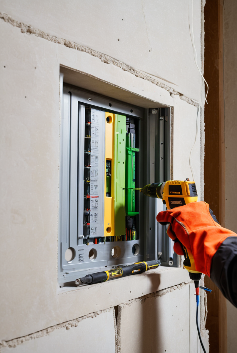Подготовка проема — ключевой этап, выполняемый своими руками. Точный расчет размеров ниши: к габаритам корпуса (например, слаботочного щита) прибавьте по 1-1.5 см с каждой стороны для зазора. Глубина установки определяется суммой глубины бокса и толщины будущей отделки. Создавая углубление в стене, будь то под коллекторный бокс или щиток, важно учесть материал стен. Для бетона используйте перфоратор, для гипсокартона — специальную пилу. Перед началом работ обязательно проверьте стену на наличие скрытых коммуникаций.