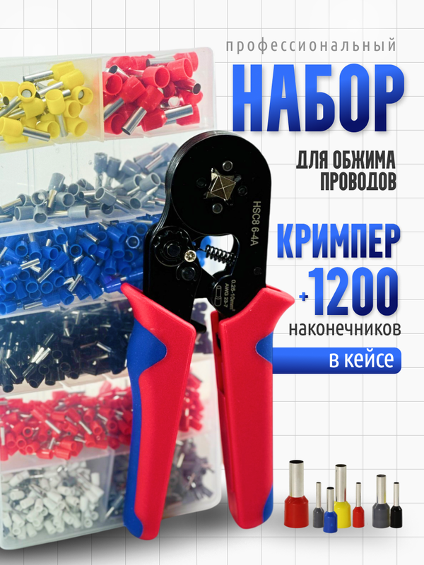 Профессиональный кримпер — это специализированный инструмент для надёжного обжима кабельных наконечников, гильз и разъёмов. Комплект включает сам кримпер и набор из 1200 наконечников разных типоразмеров, что делает его универсальным решением для электромонтажных, автоэлектрических и радиотехнических работ.