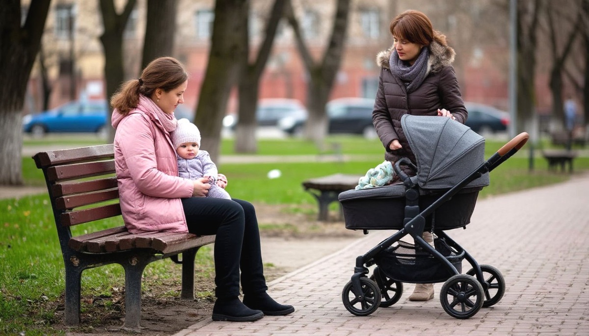 Она села на скамейку, прощаясь с сыном, когда рядом остановилась женщина с коляской. Она что-то нежно ворковала, склоняясь над ней.