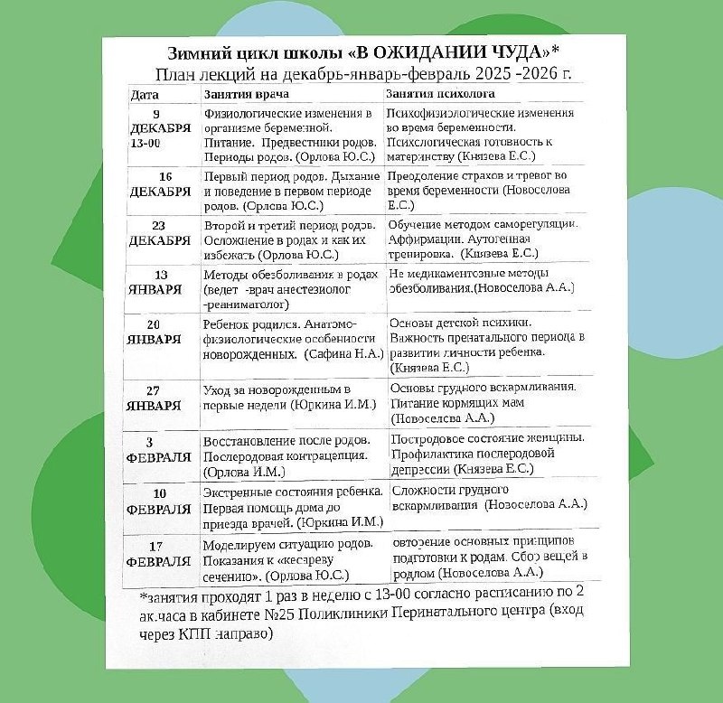 ❄️ Напоминаем расписание платной школы мам "В ожидании чуда