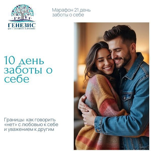 День 10. Границы: как говорить «нет» с любовью к себе и уважением к другим Добрый день, наши уважаемые участники! 🧱 Вчера мы оснастили себя инструментами для моментальной помощи в стрессе. А что, если мы можем не только тушить пожары, но и профилактически создавать пространство, где их будет меньше? Этим пространством являются наши личные границы. Границы — это не стены отчуждения. Это правила вашего внутреннего дома. Они сообщают окружающим: здесь можно, а здесь — нельзя. Так я чувствую себя в безопасности, уважаемо и комфортно. Говорить «нет» — один из самых сложных, но и самых важных навыков заботы о себе. Это не про эгоизм. Это про честность и уважение: к своему времени, энергии, ценностям и чувствам. Почему умение отказывать — это акт любви? К себе: Вы перестаете истощать свои ресурсы, делая то, что вызывает сопротивление. К другим: Вы даете им честную обратную связь и строите отношения на правде, а не на скрытом раздражении. К отношениям: Здоровые границы делают их более прочны