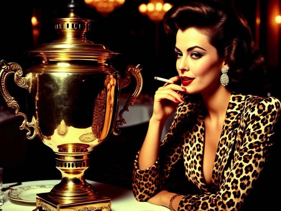 Крупным планом показана броско одетая немолодая женщина. Яркая косметика на лице немного размазана, под носом следы засохшей крови. Она даже не пытается стянуть края разорванной на груди леопардовой блузки, из-под которой видно кружево дорогого бюстгальтера. Дама элегантно стучит пальцем по сигарете, стряхивая в пепельницу пепел, картинно откидывается на спинку стула, кладёт ногу на ногу, смотрит исподлобья, ухмыляясь, глубоко затягивается и выпускает дым прямо в объектив, тем самым давая понять, что ситуацию она комментировать не собирается.
