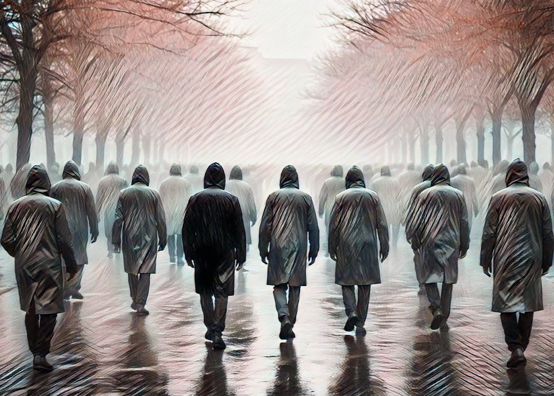 Когда я смотрел на дождь я почему-то понимал что эти люди умершие, возможно за эти сутки. И они уходят в другой мир. Даже не знаю почему, но именно такая мысль пришла в мою голову.