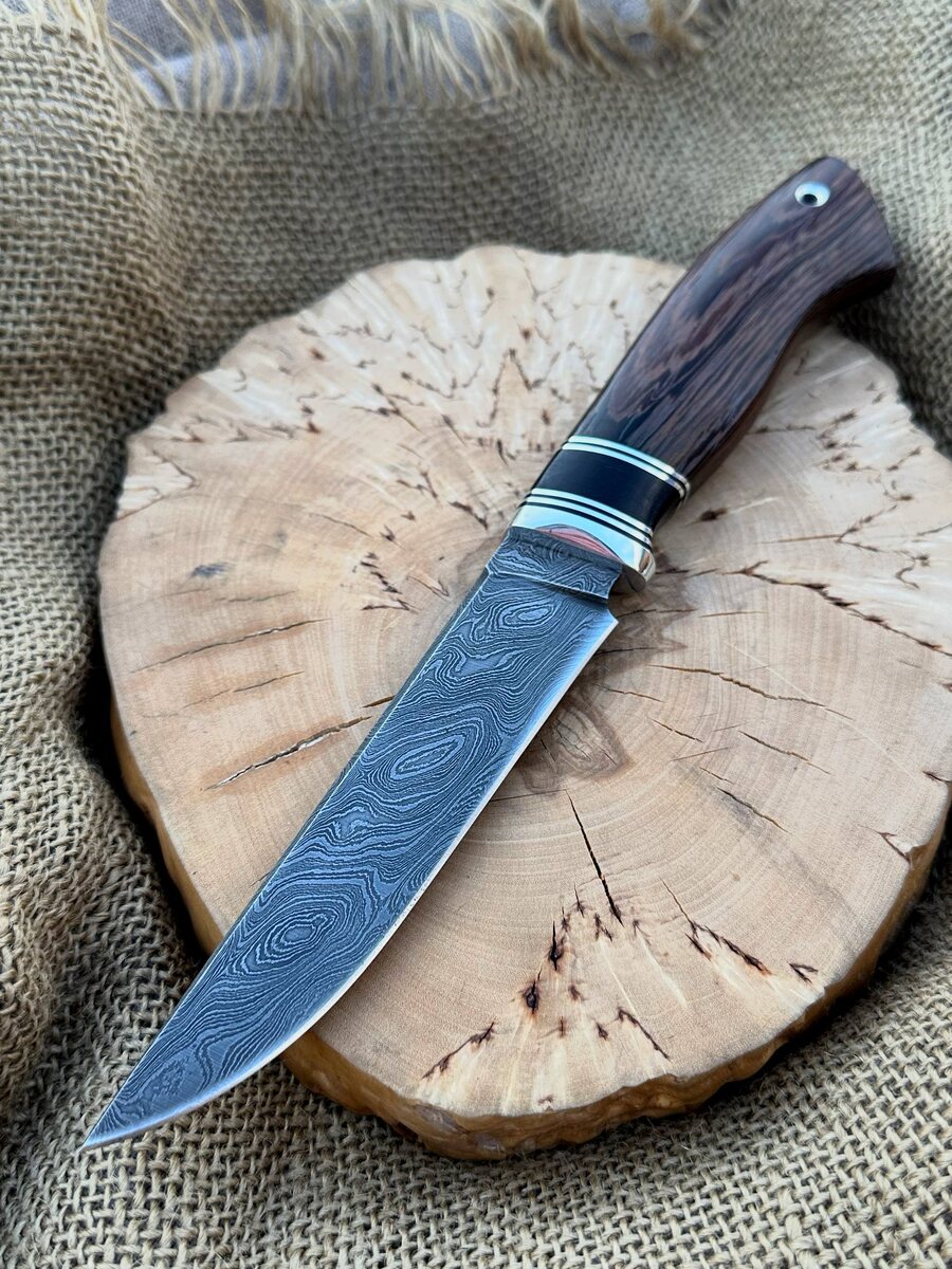 Ищете универсальный нож для охоты, рыбалки или кухни? Познакомьтесь с нашей новинкой — «Ирбис-2»! Этот нож сочетает лучшие традиции кузнечного дела и современные материалы. Преимущества: - Клинок из дамасской стали (950 слоёв) — прочность, уникальный рисунок и отличная удерживаемость заточки. - Твердость 62 HRC — легко справится с любыми продуктами и разделкой некрупной дичи. - Рукоять из венге и чёрного граба — приятно лежит в руке, устойчива к влаге и износу. - Бритвенная заточка, прямые спуски и фальшлезвие — для точной и эффективной работы. - Ножны в комплекте (дополнительно — формованные кожаные ножны ручной работы +8000 руб.). - Пожизненная гарантия на отсутствие производственных дефектов. Для кого подойдёт? Охотники, рыбаки, туристы, поклонники функциональных и стильных ножей. Идеален в подарок! Цена: 11.286 руб. 9.593 руб. — по акции. Артикул: 11963-1. В наличии. 📲 Заказать просто: Пишите 👉 @Nazarklinokbot или звоните/WhatsApp/Viber: +79101343831 Подробнее — [сайт](https://n