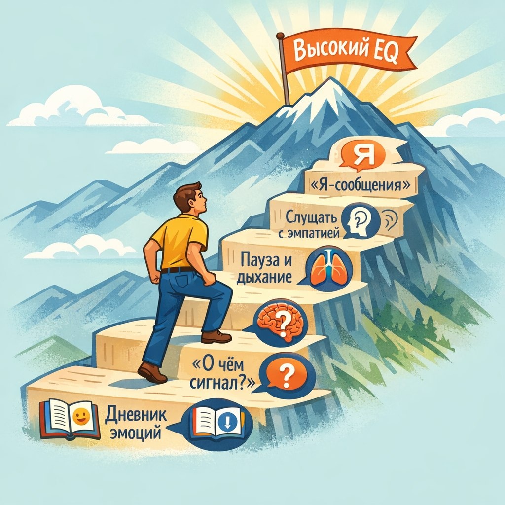 Вывод:Эмоциональный интеллект — это не врожденный талант, а набор мышц, которые можно и нужно тренировать. Начните с малого, будьте добры к себе в процессе, и вы удивитесь, насколько изменится качество вашей жизни и отношений. Путь в тысячу миль начинается с первого шага — осознания. 👣