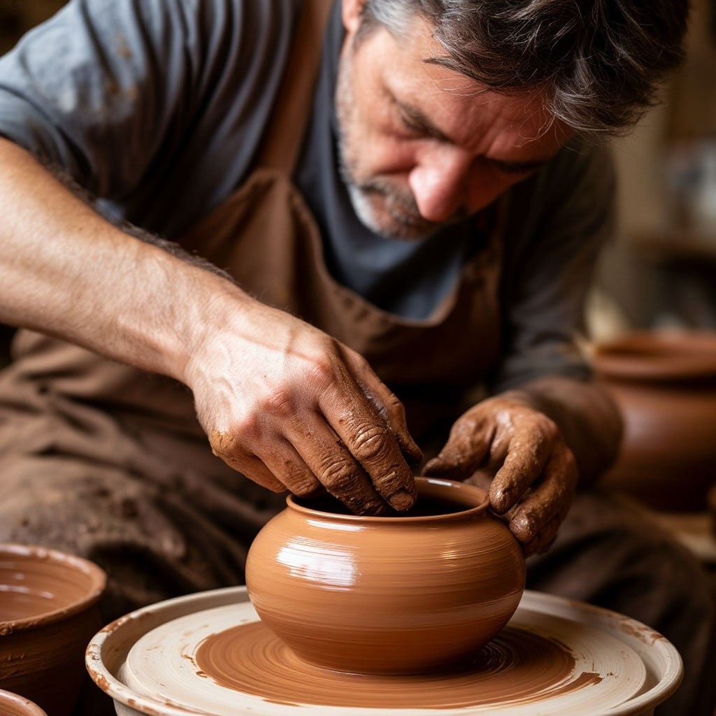 Учитель спросил первого: «На чём ты сосредотачивался, вращая гончарный круг?» — «На страхе, что кувшин треснет», — ответил тот. Второй сказал: «Я представлял идеальную форму и силуэт». «Ваши руки, — сказал учитель, — лишь следовали за мыслью, которая вела круг».👣